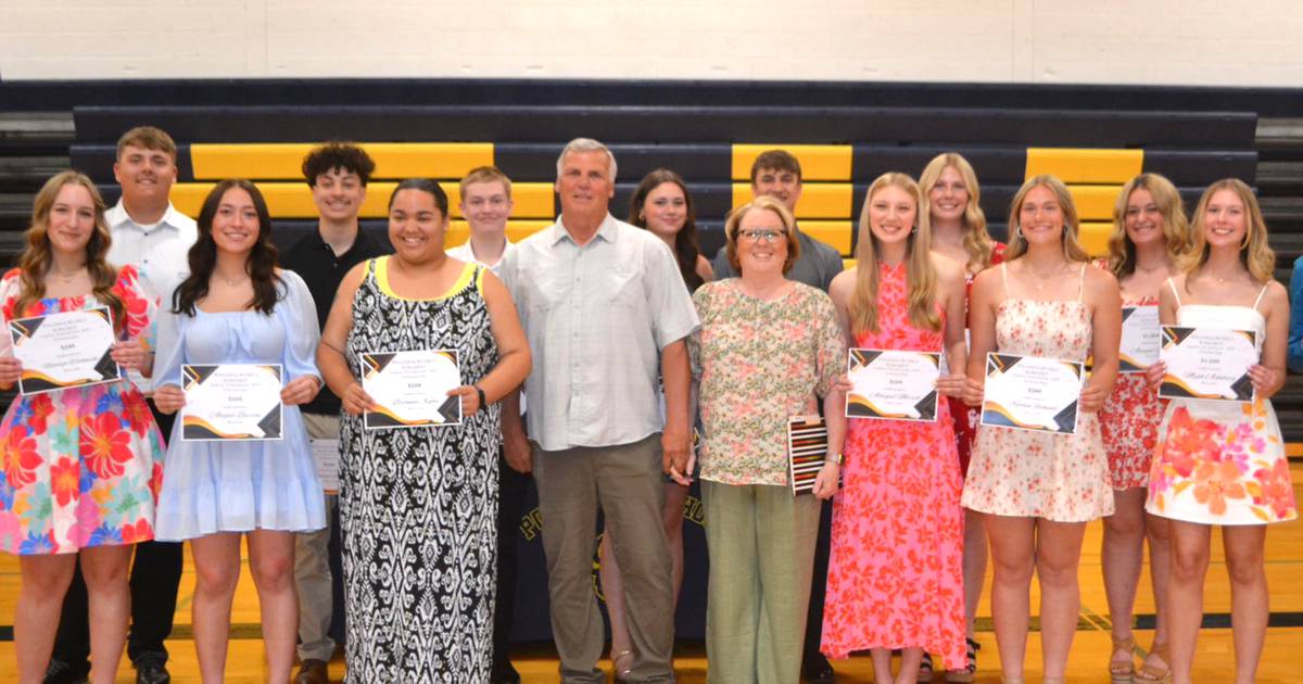 POLO – Mike and Paula Faivre awarded 14 scholarships from the William and Beverly Burkardt Family Foundation on May 14 during Polo Community High School’s awards night,