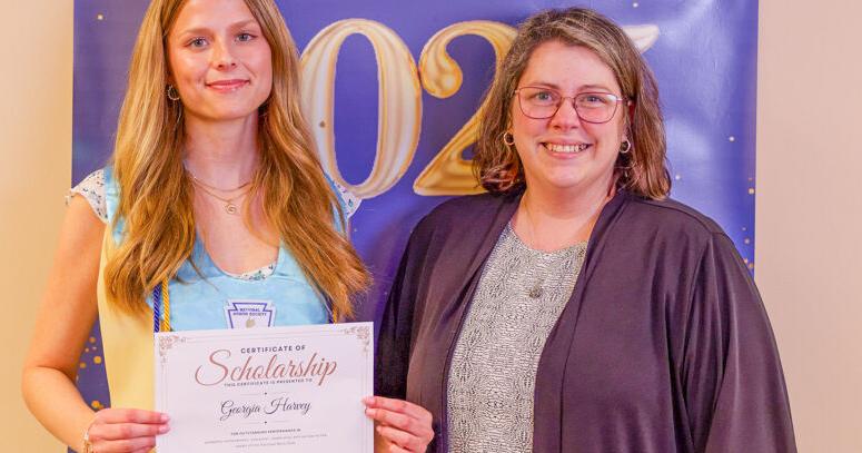 Newnan High School student Georgia Harvey, left, receives the Newnan High School Beta Club Scholarship.