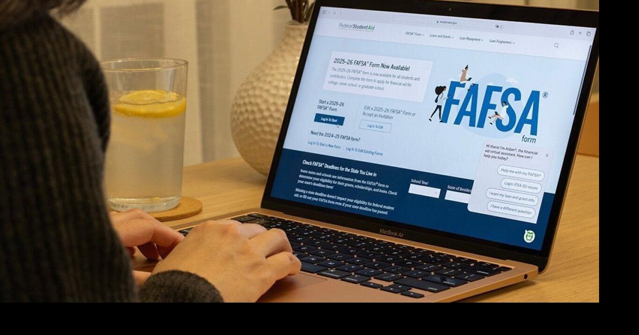 A student browsing the FAFSA website on a laptop.![]()