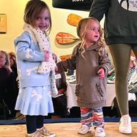 LITTLE ONES ARE BIG SHOW STOPPERS – Lana Daly, left, and Remy Walker, second from right, both 2½ years old, model children’s fashions from The Tea Corner Emporium.