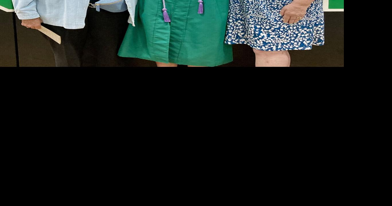 Aley Williams, holding her recent scholarship award from P.E.O., is shown with Chapter CU members Eleanor Tucker, left, and Diane Middleton, right.