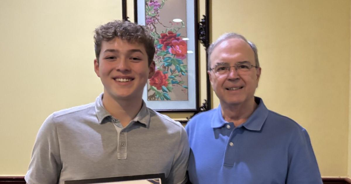 Kiwanian Herman Gatewood, right, presents the Sophomore of the Year Scholarship to Lucas Andersen, son of Mark and Perla Anderson. The scholarship involved a local review, district review and finally selection as one of 19 recipients in Texas-Oklahoma division. In his 2024-25 application, Lucas shared his extracurricular and volunteer activities, as well as his academic and leadership skills. Cleburne Kiwanis meets at 6 p.m. the first and third Tuesday at Asian Buffet.