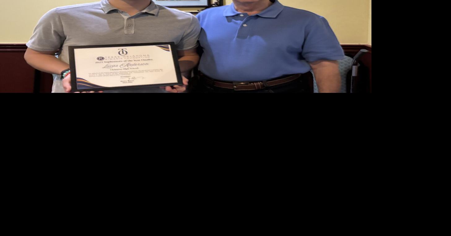 Kiwanian Herman Gatewood, right, presents the Sophomore of the Year Scholarship to Lucas Andersen, son of Mark and Perla Anderson. The scholarship involved a local review, district review and finally selection as one of 19 recipients in Texas-Oklahoma division. In his 2024-25 application, Lucas shared his extracurricular and volunteer activities, as well as his academic and leadership skills. Cleburne Kiwanis meets at 6 p.m. the first and third Tuesday at Asian Buffet.