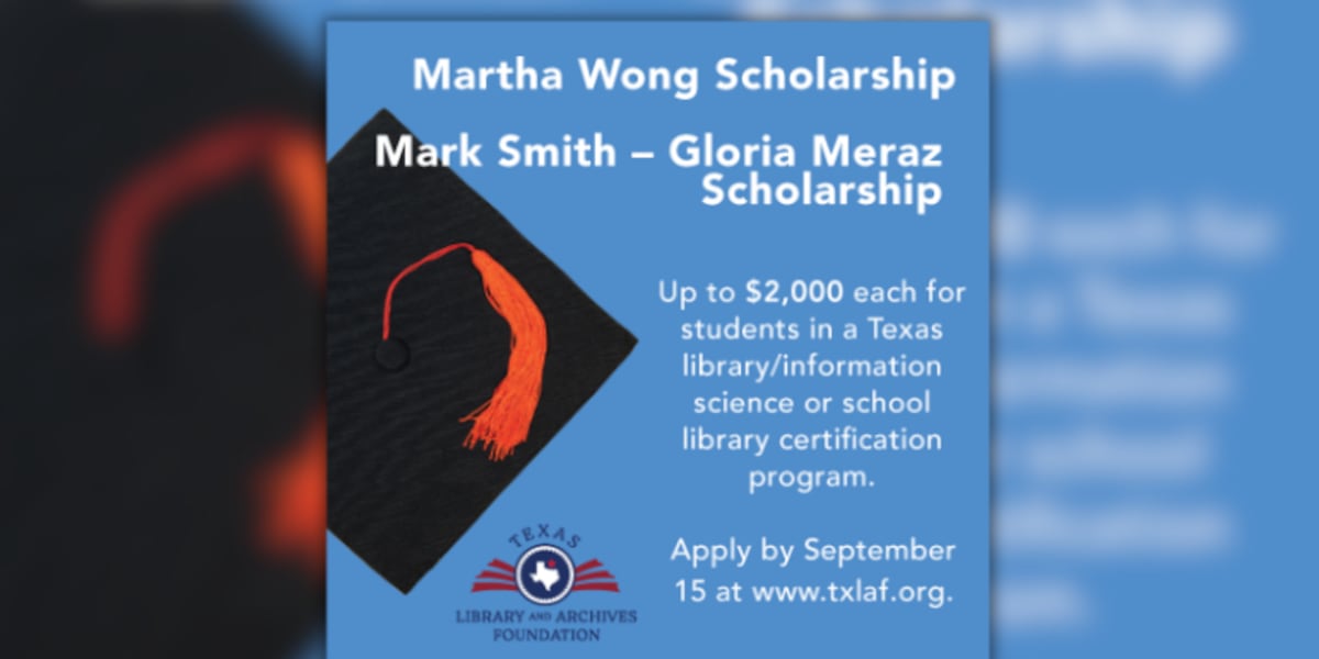 TEXAS (KAUZ) – The Texas Library and Archives Foundation has announced that applications are open for the Martha Wong Scholarship and the Mark Smith–Gloria Meraz Scholarship.