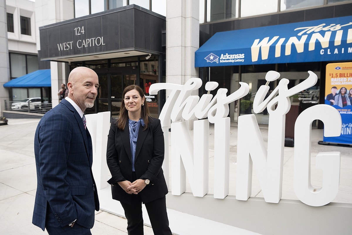 The director of the Arkansas Scholarship Lottery and state’s higher education commissioner on Thursday touted the transfer of $48 million to the Arkansas Division of Higher Education to fund college scholarships for the fall semester as the largest transfer in the lottery’s 16-year history.