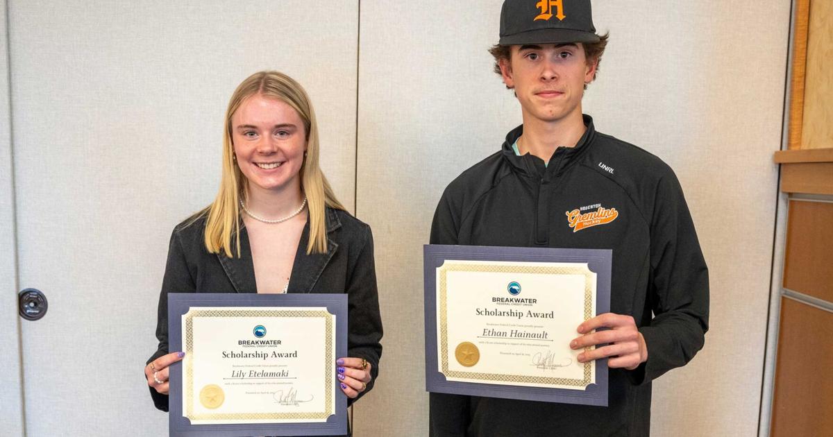 Scholarship recipients Lily Etelamaki from Chassell Township Schools and Ethan Hainault from Houghton High School. Not pictured is Ella Roy from Houghton High School. (Photo courtesy of Breakwater FCU)