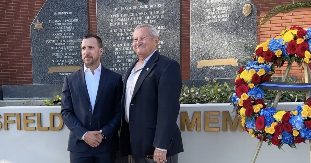Erik Nelson and his father, Larry, attended the annual memorial ceremony outside BPD headquarters as part of National Peace Officers Week to renew old friendships and acquaintances on Thursday. But it was more than that, as Nelson prepares to take part in the Luke Bryan Farm Tour event on Saturday, to raise money for the memorial scholarship in his brother’s name.