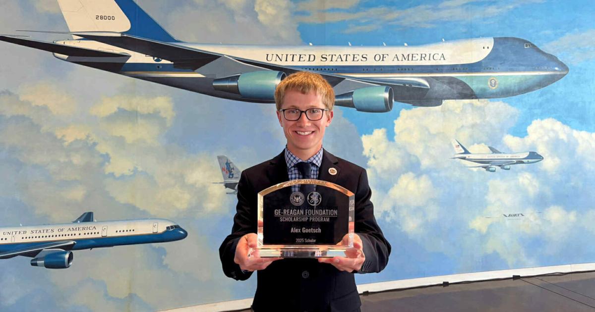 Alex Goetsch, a 2025 Cedar Falls High School graduate, was awarded the prestigious GE-Reagan Foundation Scholarship in California.