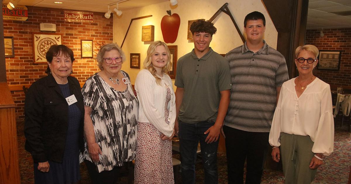 The Woman’s Club of Gettysburg awarded three $1,000 scholarships during its meeting at Hoss’s Wednesday. Pictured from left are Karen Richard, scholarship chairman; Nancy Carson, president of the Woman’s Club of Gettysburg; Cadence Holmber from Fairfield High School; Dylan Cunningham from Gettysburg High School; Bryson Westfall from Littlestown High School; and Lynne Hershey, scholarship chairman. (Darryl Wheeler/Gettysburg Times)
