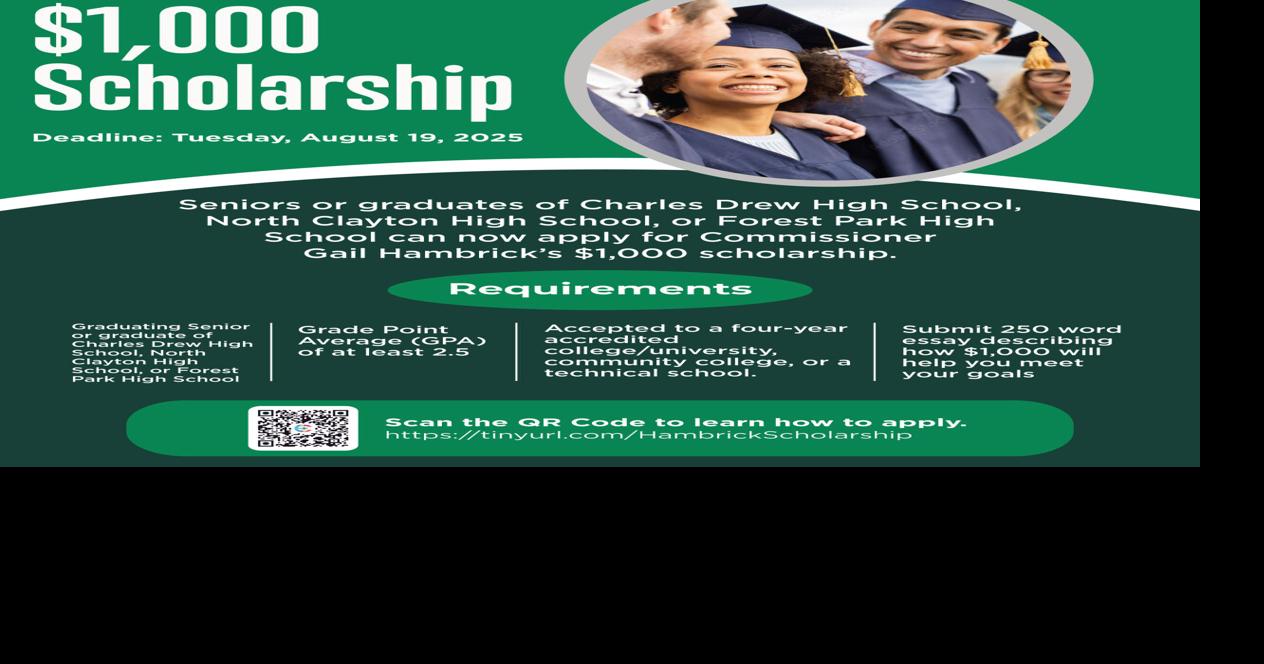 Clayton County District 2 Commissioner Gail Hambrick invites seniors or graduates of Charles Drew High School, North Clayton High School and Forest Park High School to apply for the upcoming school year.