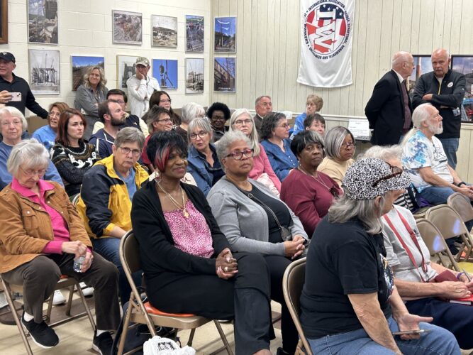 Members of the public attend the Democratic legislators’ “Kitchen Table Tour” Thursday night at the Ironworkers Hall in Wheeling.