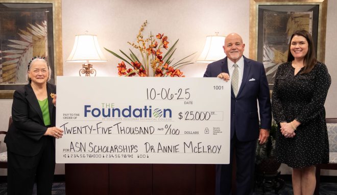 THOMASVILLE — Dr. Annie Laurie McElroy recently donated $25,000 to establish the new Dr. Annie Laurie McElroy Scholarship for Associate of Science in Nursing (ASN) students at Southern Regional Technical College (SRTC). The endowment, held permanently, will maintain its principal value while generating distributable earnings. Once matured, this endowment will provide student scholarships every semester, ensuring sustained assistance for those in need.