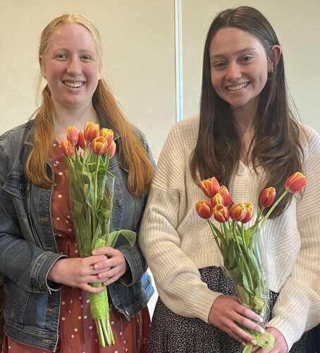 Grace Bonowitz and Samantha Valente — both seniors at Wheaton-Warrenville South High School — were on hand to accept their awards at the May 20 spring luncheon and annual meeting of DuPage Women’s Club at Glendale Lakes Country Club in Glendale Heights.