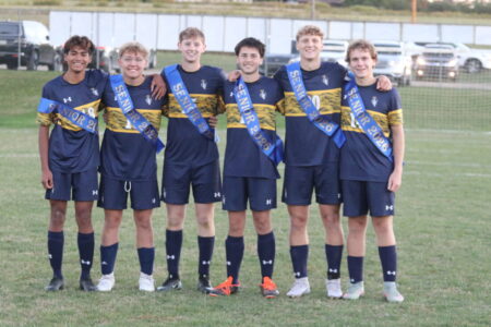 Bryceton Wilkins, third from left, is pictured with fellow senior members of the Eisenhower boys soccer team, Jayce Lang, Derek Guiher, JE Unida, Mike Mizner and Logan Dougherty.