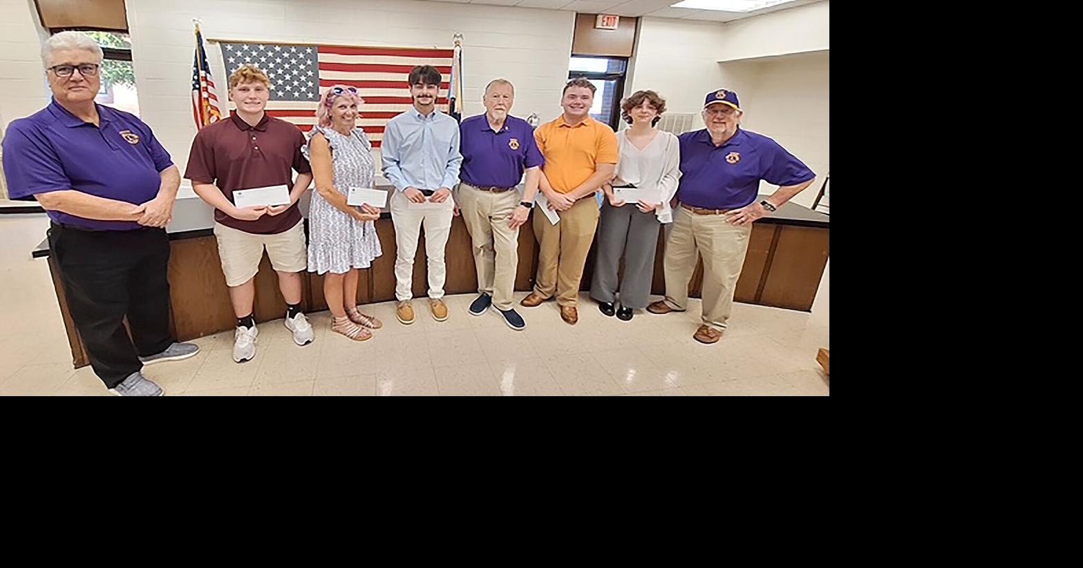 The Erwin Lions Club awarded scholarships to area graduates: Lara Baylor Tripp of Cape Fear Christian Academy; Braden Riley Kessler, Jonathan Neal Kerr and Dakota Marie Stiltner, all of Triton High School; and Tyler Clayton, who was homeschooled. Pictured during the presentation, from left, are Lions Club President Eddy Blackman; Kessler; Lolita B. Tripp, receiving the scholarship on behalf of her daughter Lara, who was unable to attend; Kerr; Lions District 31 N. Vice Governor Earl House; Clayton; Stiltner; and Lions Club Treasurer Jim Wade.