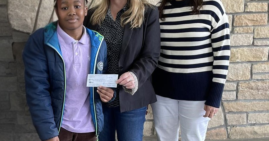 Ryker Covel, left, was bestowed one of two opportunity scholarships provided by the Evergreen After School Club. Also pictured is EASC Executive Director Denise Jennings.