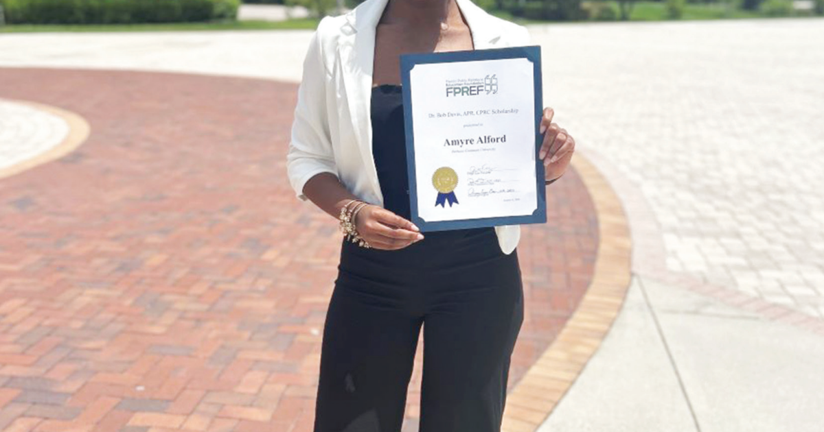 Amyre Alford, a senior at Bethune-Cookman University, took the stage in Orlando at the Florida Public Relations Association (FPRA) PR & Comms Summit in August to accept FPRA’s Dr. Bob Davis APR, CPRC Scholarship.