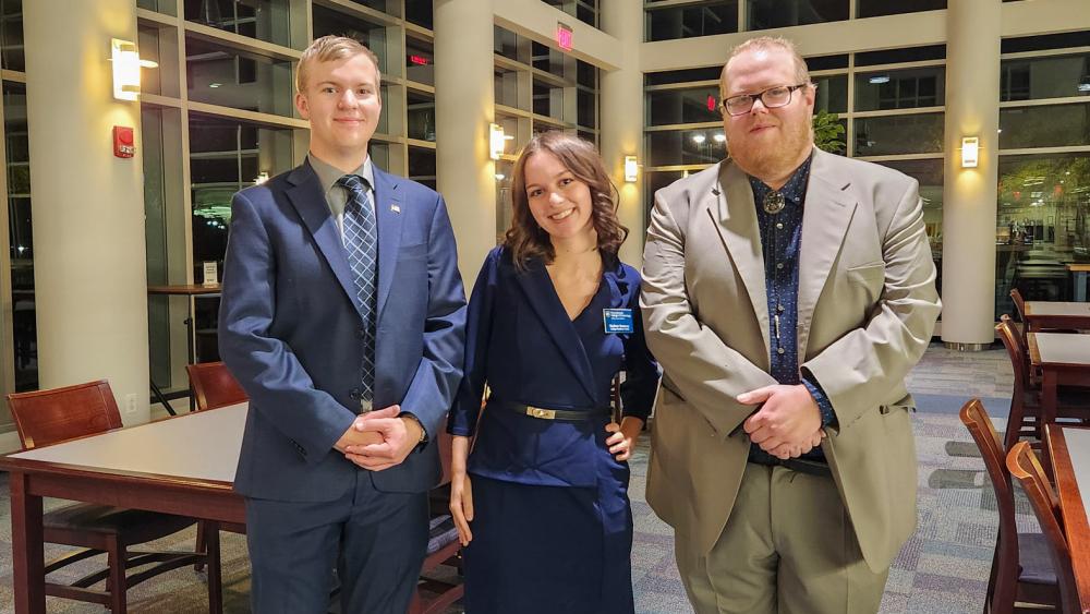 Helping guests throughout the recent Penn College Foundation Dinner & Auction – which raised more than $170,000 for student scholarships – are (from left): James C. Fretz, a construction management student and college relations assistant from Collegeville; Madison N. Sweeney, career services fellow and a 2025 business administration graduate; and Andrew J. Graham, a network administration & engineering technology student and college relations assistant. Credit: Becky J. Shaner, Penn College. All Rights Reserved.
