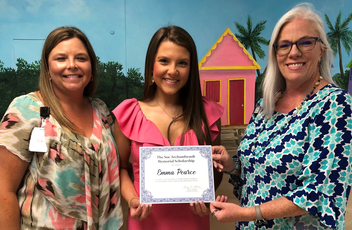 Emma Pearce of Four Oaks has won the 2025 Sue Archambeault Memorial Scholarship, presented at UNC Health Johnston to a student interested in a health care career.
