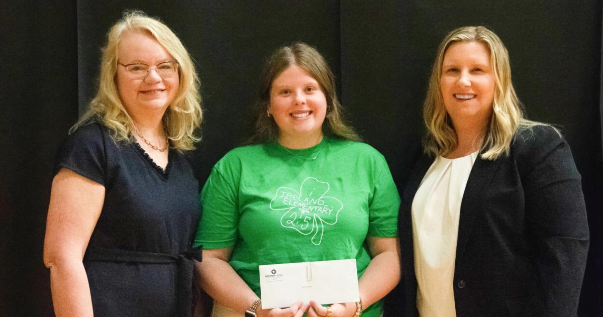 Taryn Truesdel (center) accepts the SVB&T Reinvestment Act Scholarship.