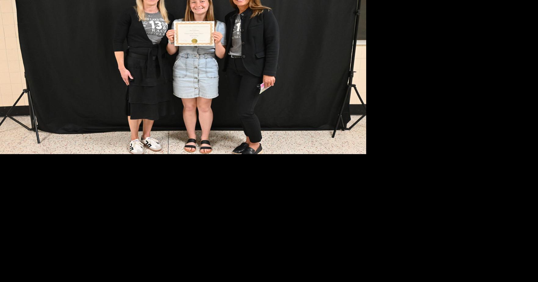 Ava Osheim receives the 2025 Green Lake Area 13dot1 scholarship from 13dot1 board members Kate Triller, left, and Mary Reabe during Ripon High School’s Senior Awards Night in late May.   Â