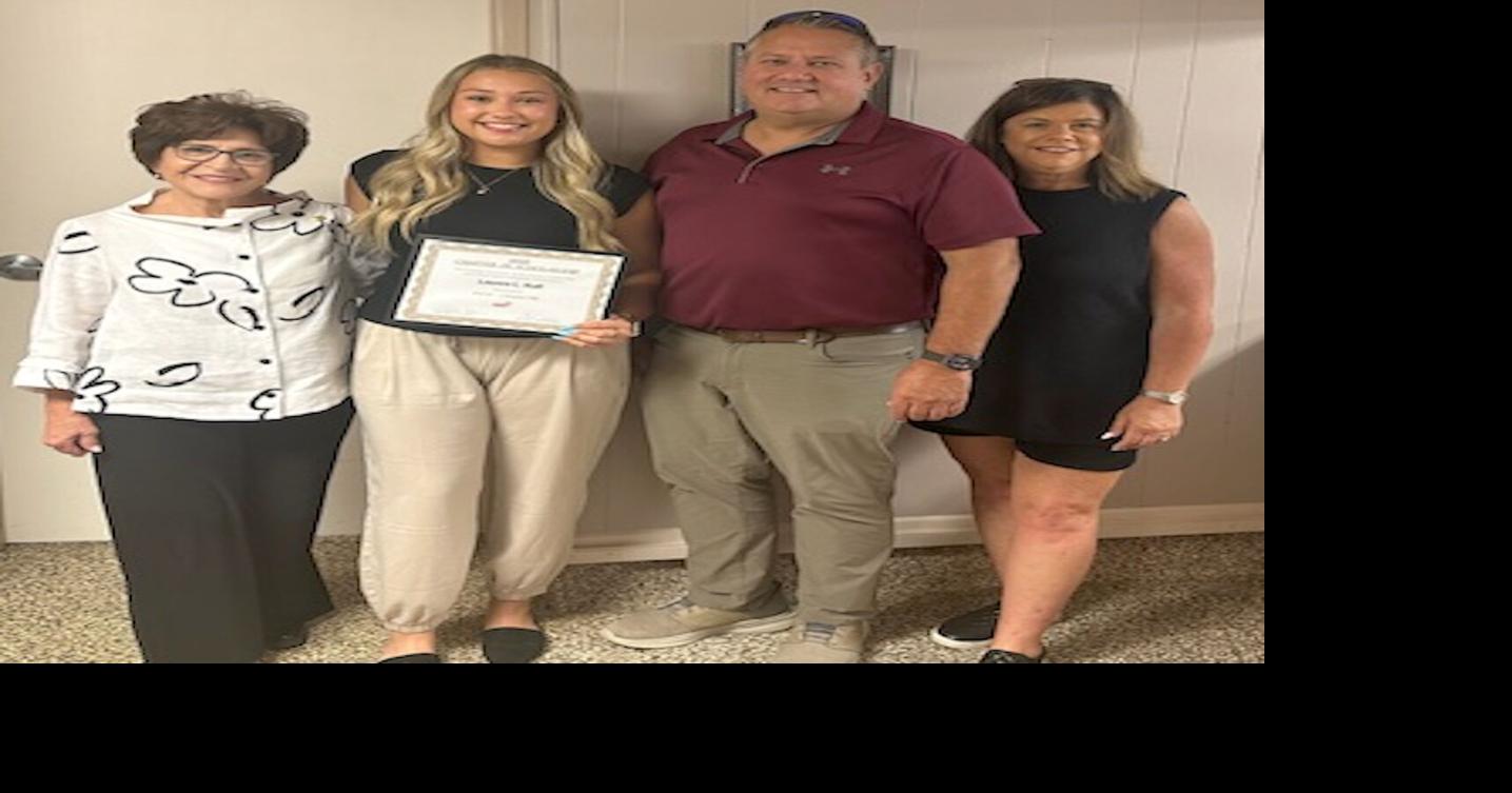 P.E.O. Chapter FK of Mt. Carmel recently awarded scholarships to Gabi Peach and Lauren Hall.