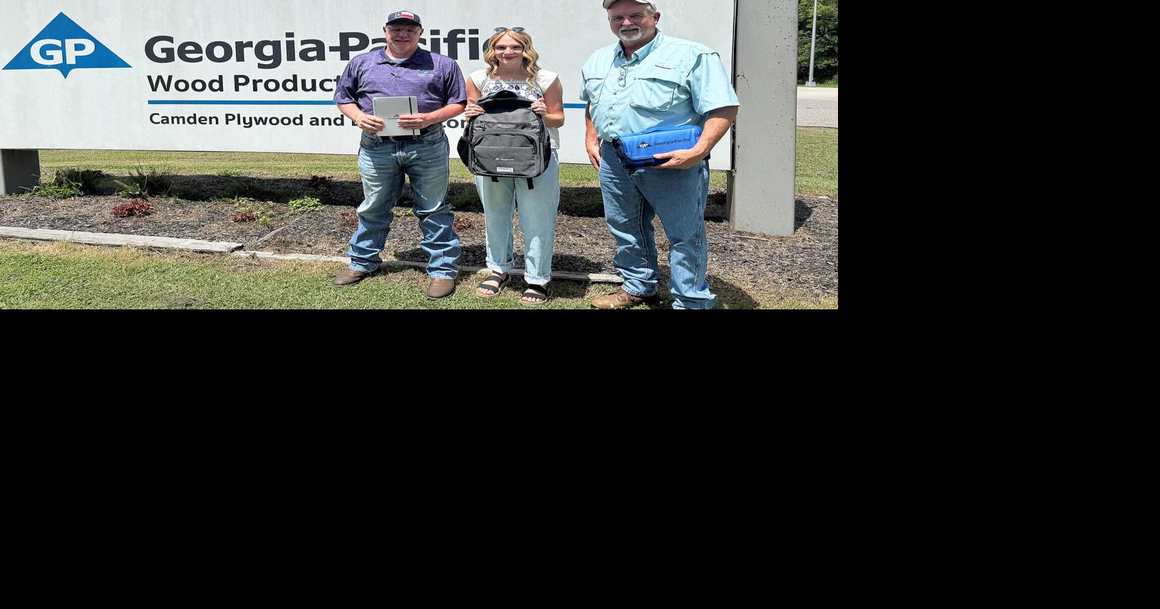 Livingston High School graduate Kaleigh Standley has been selected as a Koch Family Foundation Dependent Scholarship recipient. Pictured, from left, are Chris Standley, Kaleigh’s father; Kaleigh Standley; and George Standley, Georgia-Pacific Camden plywood plant manager. Jayden Dickerson was also awarded a scholarship.
