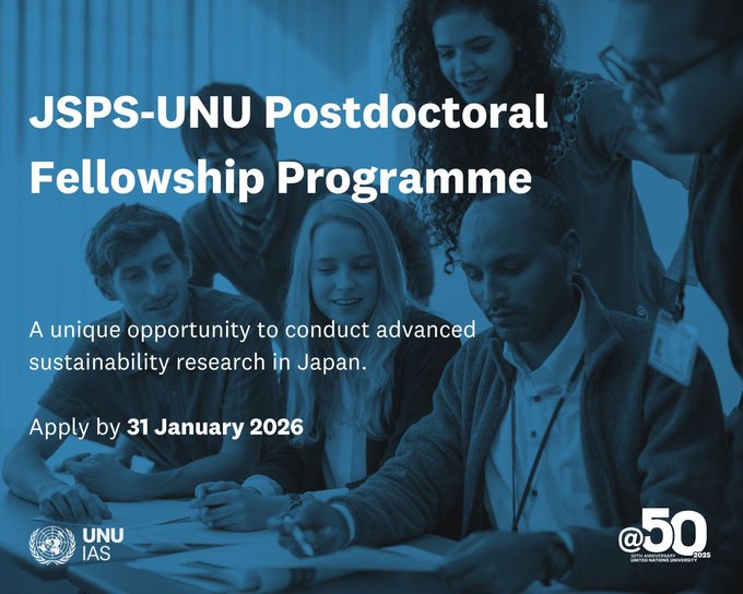 The 2026 JSPS–UNU Postdoctoral Fellowship Programme is now open for applications. This prestigious, fully funded international fellowship provides outstanding early-career researchers with the opportunity to conduct advanced sustainability research at top Japanese universities and research institutions.