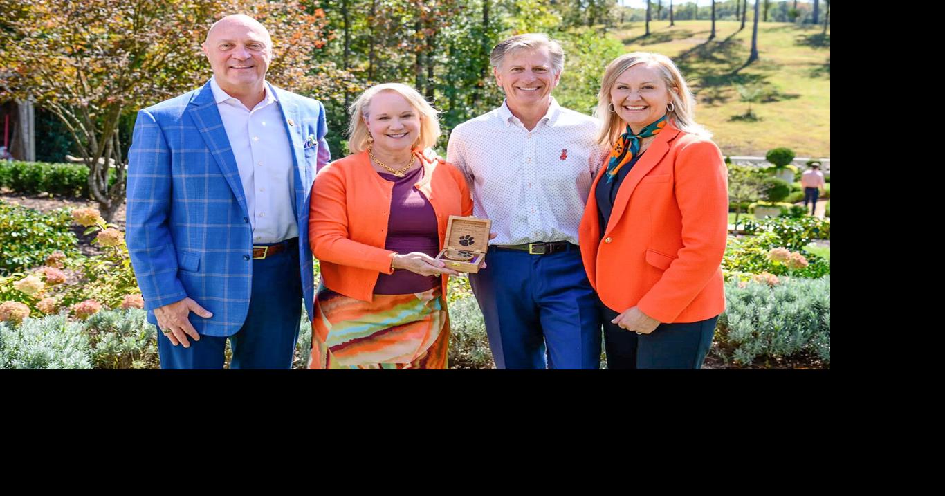 Pictured is Jim and Julee Kaplan (middle) standing next to Clemson University president Jim Clements (left) and his wife, Beth (right).