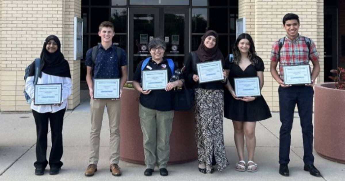 Kendall Grundy Community Action scholarship winners for 2025 (from left)• Zaynab Ahmed, Cameron Raymer, Estella Figueroa, Samya Sehwail, Barbara Munoz and Jacob Busto. Scholarship awards ranged from $200 to $950. (Photo provided by Kendall County Health Department)