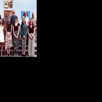 Front row, from left, Morgan French, Tessa VanDeweel, Eva Sabo, Riley Dietrich, Kaylee Dietrich, Josie Gill and Stephanie Luke received scholarships from the Orion Masonic Lodge. Also pictured are, back row, from left, Chad Kendzerski, Jack Burlingame, Dominic Honkonen, Scott Baker, Dennis Gunter and Jerry Palfy.
