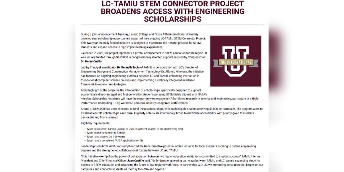 LAREDO, Tex. (KGNS) – Tuesday, June 24, Laredo College and TAMIU announced a new partnership with the goal to support students in STEM and make higher education more accessible. The project is called LC-TAMIU STEM Connector, and it aims to improve the transfer process for engineering students.