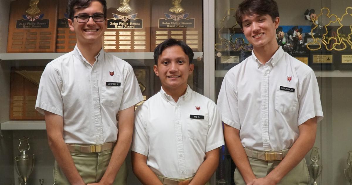 Three members of the Brother Martin Crusader Band have been selected for the Louisiana Music Educators Association All-State Band. They are senior Andrew Cooper (percussionist, left) and sophomores Alex Ng (flute player, center) and Michael Chalona (percussionist, right), who all went through an audition process and will represent Brother Martin in January at the LMEA Annual Conference.