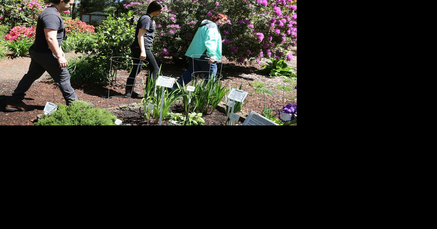 From right, Douglas County Master Gardeners Julie Stanbery, Syliva Andino and Christian Andino work in the Discovery Garden in Roseburg in May 2022.