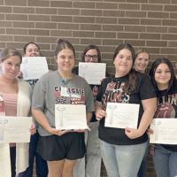 Scholarships were awarded to eight Practical Nursing students: Skyla Delahoussaye from Purcell, Samantha Johnson from Noble, Madison Lacy from Purcell, Heather McGough from Wynnewood, Danelle Moistner from Davis, Carly Neely from Lindsay, Shaylah Nirk from Noble, and Alisha Williams from Lindsay.