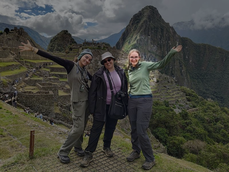 Photo: (L-R) Jaime Williams, Professor Ruth Ann Armitage, and Presidential Scholarship recipient Avi Dragun in Peru. Courtesy of EMU