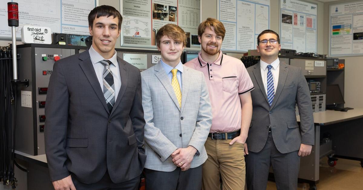 Four South Dakota State University electrical engineering majors repeated as Power & Energy Society Scholarship winners from the International Order of Electrical and Electronics Engineers. They are, from left, Kalen Meyer, Luke Rasmussen, Drake Rogers and Nicholas Erickson.