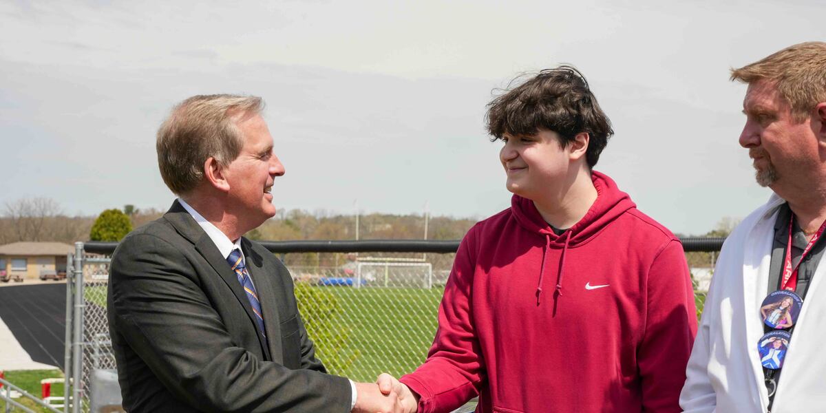 Sophomore Aron Nuredini was awarded $500 in a ceremony outside his school.