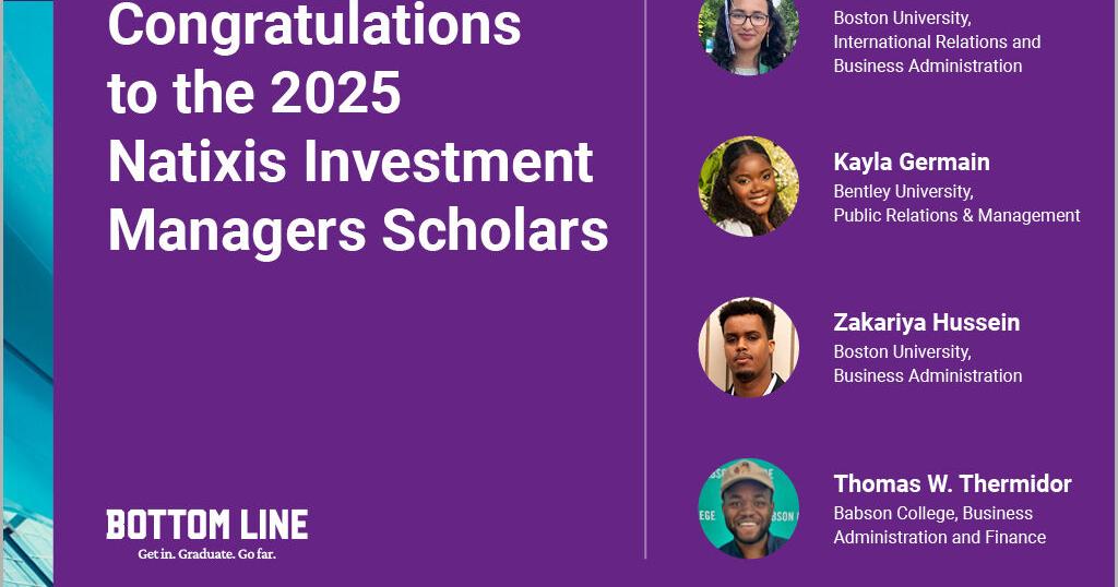 Natixis Investment Managers announces its 2025 scholarship awardees: Rida Ali, Boston University; Kayla Germain, Bentley University; Zakariya Hussein, Boston University; and Thomas W. Thermidor, Babson College.