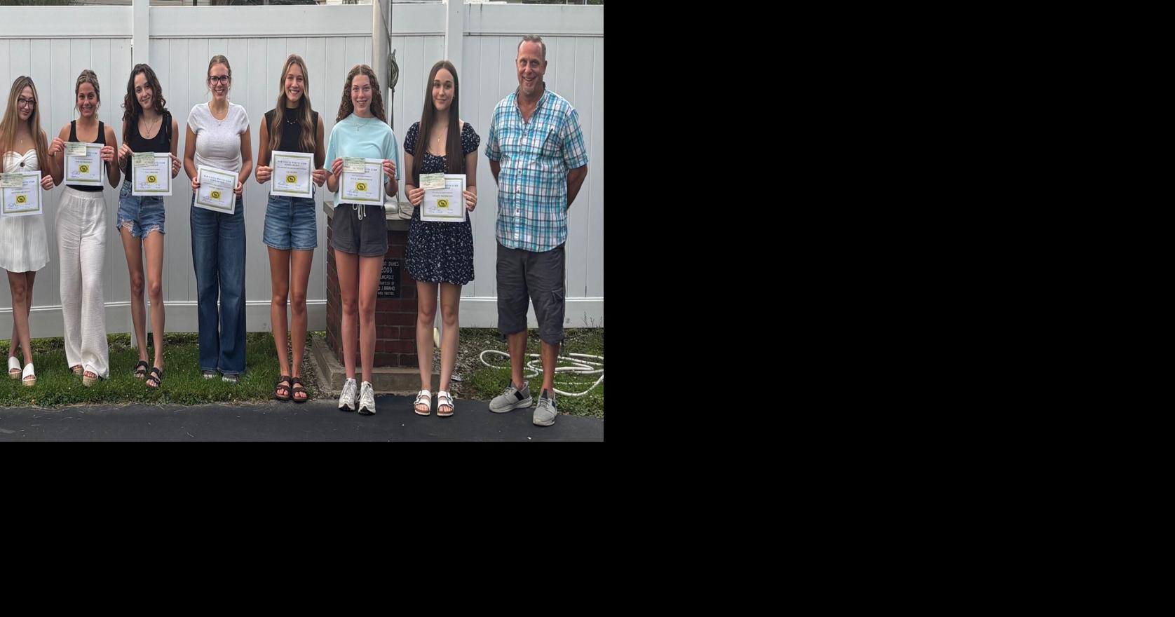 The New Castle Wolves Club Den 1 provided scholarships to 11 students from Lawrence County school districts. Pictured, from left, are Don Prejsnar, Wolves Club president and scholarship committee member, Nevaeh Grimes, Julia Graham, Shyanna Graziani, Mariah McIltrot, Lily Smolnik, Hailey Collins, Lia Krarup, Kylie Fruehstorfer, Gracie Nicholson and Chris McIltrot, Wolves Club scholarship committee chairman. Missing from the photo are scholarship recipients Trentan Wolfe, Mason Petrone and Rachael Callahan.