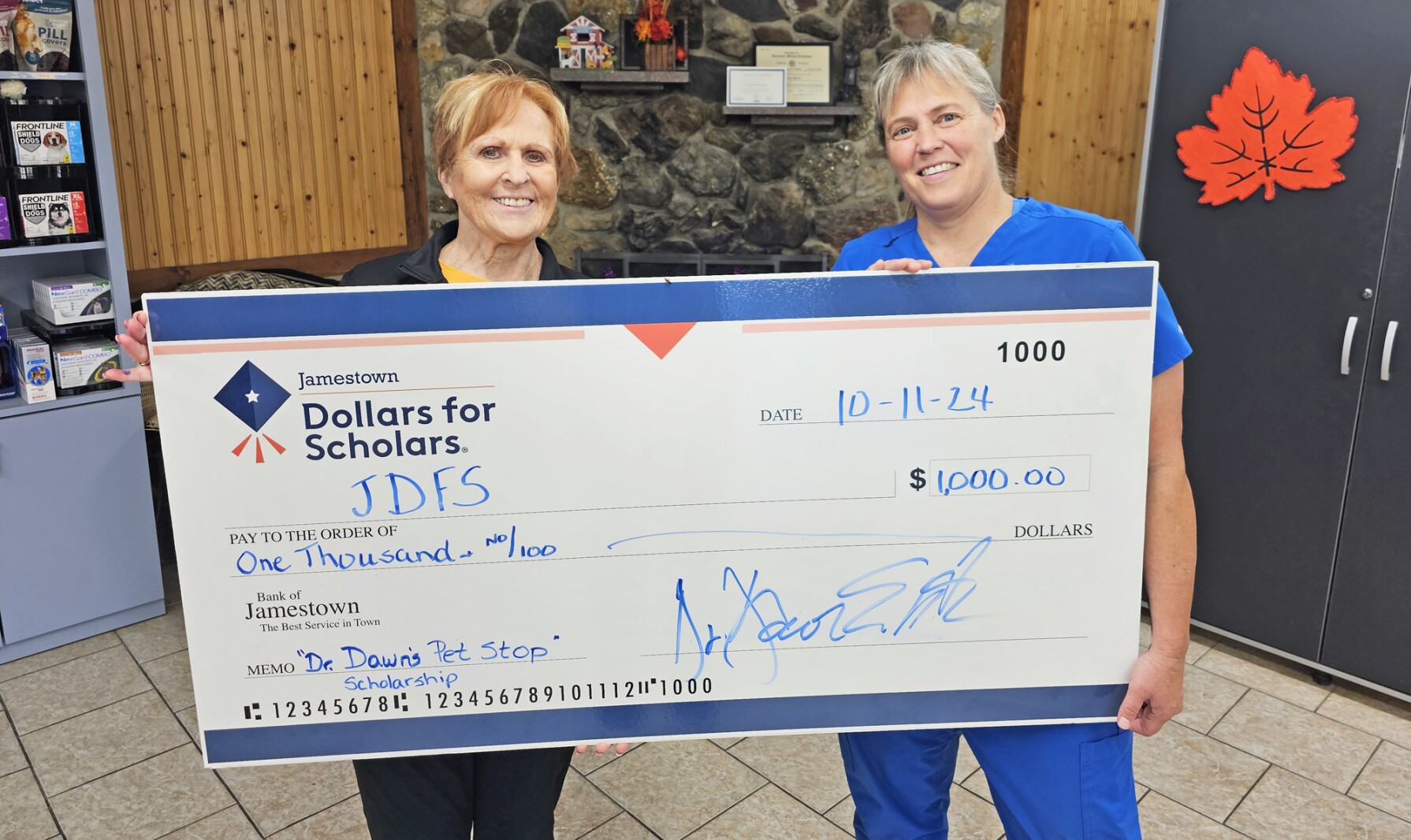 This spring, Dr. Dawn Entzminger, owner of Dr. Dawn’s Pet Stop, is offering a new scholarship through Jamestown Dollars for Scholars that will be awarded to a graduating Jamestown High School or a Jamestown Blue Jay Academy, formerly Jamestown North, senior.