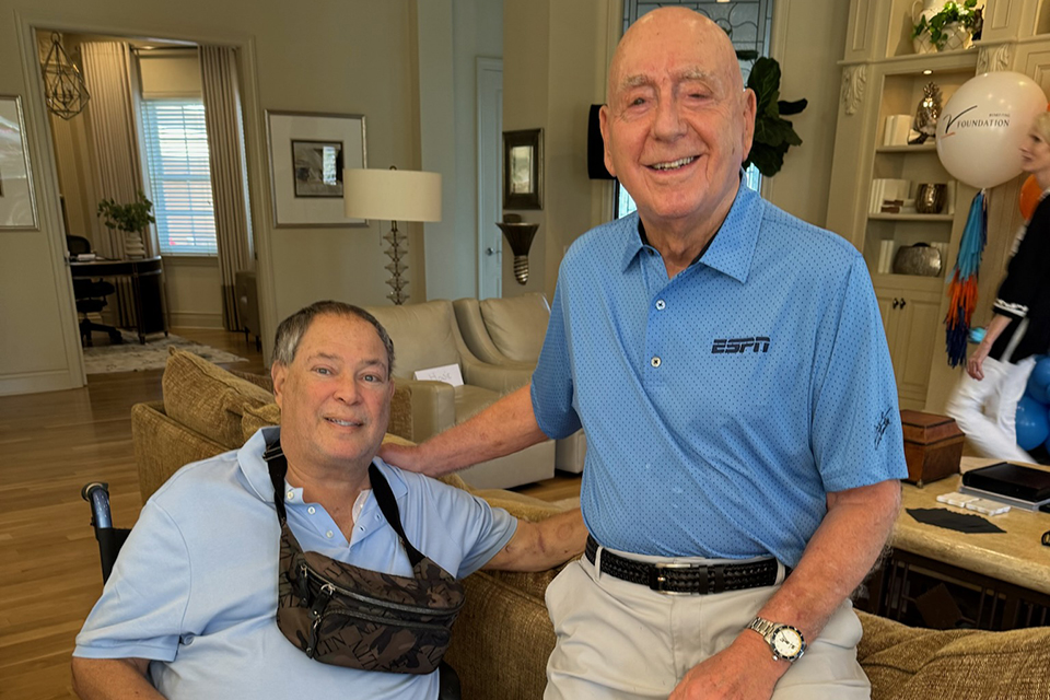 The scholarship was created in memory of Howie Schwab ’82SVC, at the suggestion of Howie’s mentor, friend, and former colleague, legendary broadcaster Dick Vitale. “Dick called me out of the blue and said, ‘I think we should start a scholarship in Howie’s name, so I’m sending a check to St. John’s,’” explained Howie’s mother, Dona Schwab.