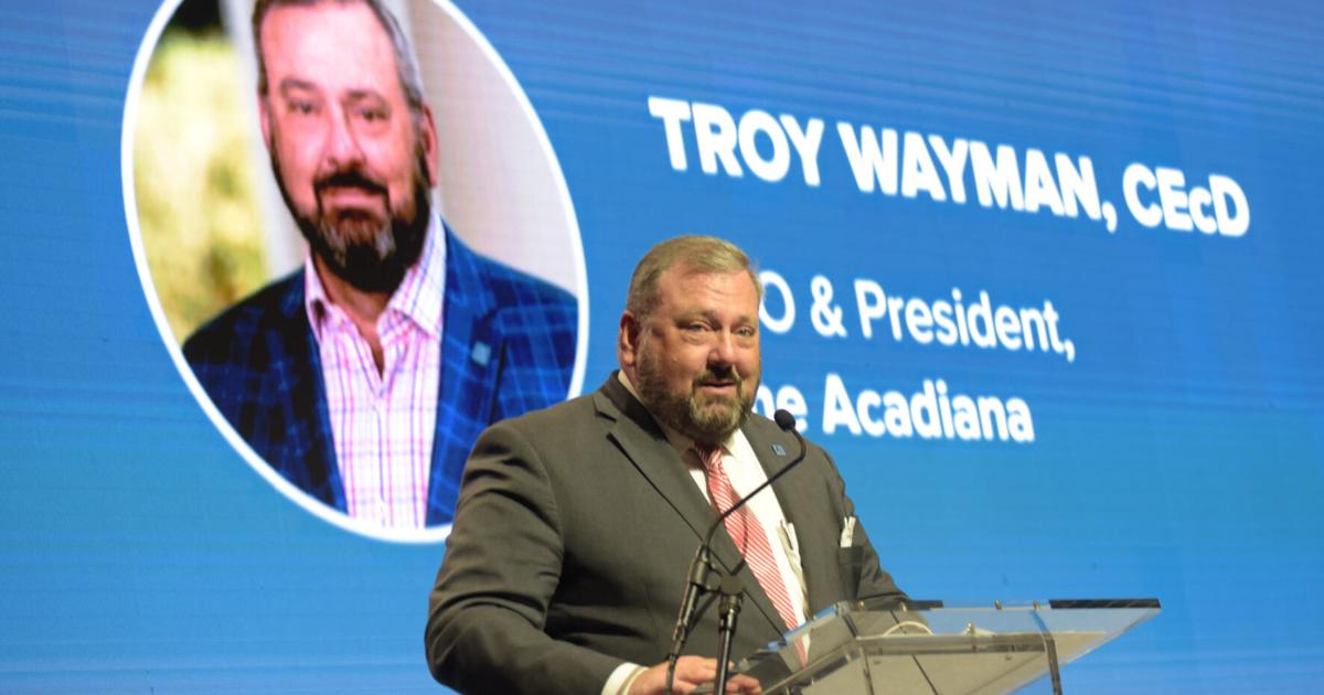 Troy Wayman delivers a message at the One Acadiana Regional Celebration, Thursday, Nov. 30, 2023, in the Cajundome Convention Center in Lafayette.