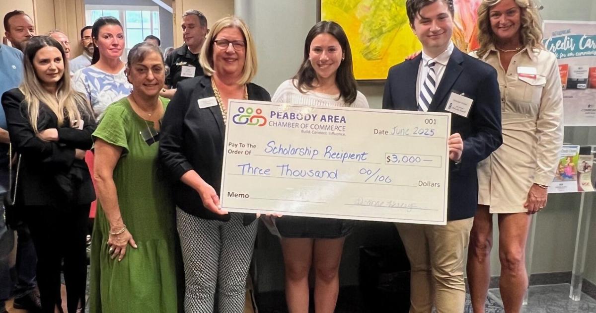 Peabody Veterans Memorial High School’s Allyson Bettencourt and Nicholas Morad of St. John’s Prep recently each received $3,000 scholarships from the Peabody Area Chamber of Commerce.
