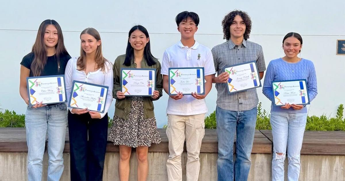Photo courtesy PfA / Partnership for Awareness named its 2025 scholarship recipients on April 21 at the Crowell Public Library. Winners included San Marino High School seniors Kenzie Chu (listed in alphabetical order), Alexandra Hughes, Jeremy Karkafi, Justin Lin, Kasia Moret and Chloe Wang. The first-place award is $2,000 and the second-place award is $1,000.