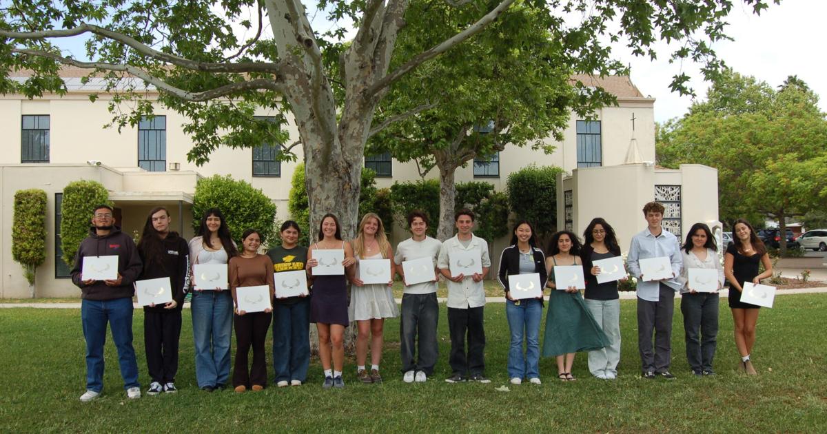 2025 Rotary Club of Ojai scholarship recipients, from left, Pablo Espana, Skylar Magill, Daniela Van Winkle, Jayleen Garrett, Bernadette Guardado, Kirra Fink, Ingrid Callahan, Dante Shevchuk, Cayden Budlong, Oeser Jamyang, Julieta Ramirez, Paola Carranza, Pako Rilling, Arianna Macias, Serena Aparicio. Not pictured: Cynthia Fregoso, Kazimir Kenton, Gabriella Calderon-Moreno.