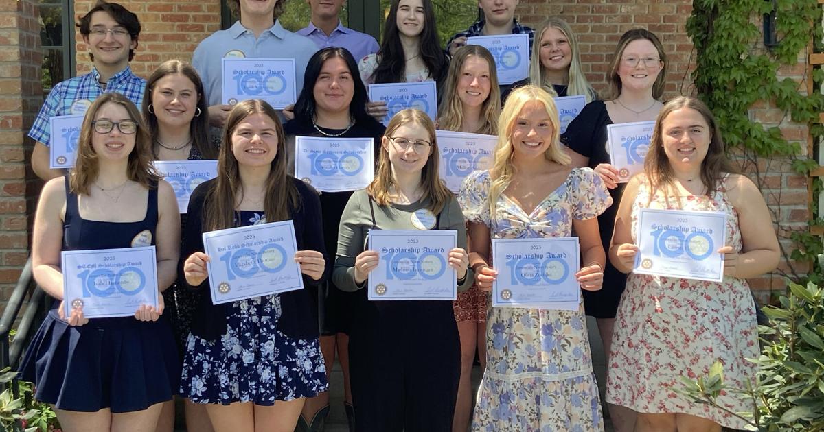 The Janesville Noon Rotary Club awarded 20 scholarships to graduating seniors from Janesville Parker, Janesville Craig and Milton high schools on Thursday, May 12 at Rotary Botanical Gardens. Shown are (front row from left) Isabel Battersby, Elizabeth Thomas, Madison Bussinger, Olivia Zuehlke and Lauryn Elzy; (middle row from left) Lauren Stutika, Annalei Harvey, Mallory Stahl and Ashleigh Tilton; and (back row from left) James Hodge, Rose Montanye, Caleb Lavern and Kylee Krauter.