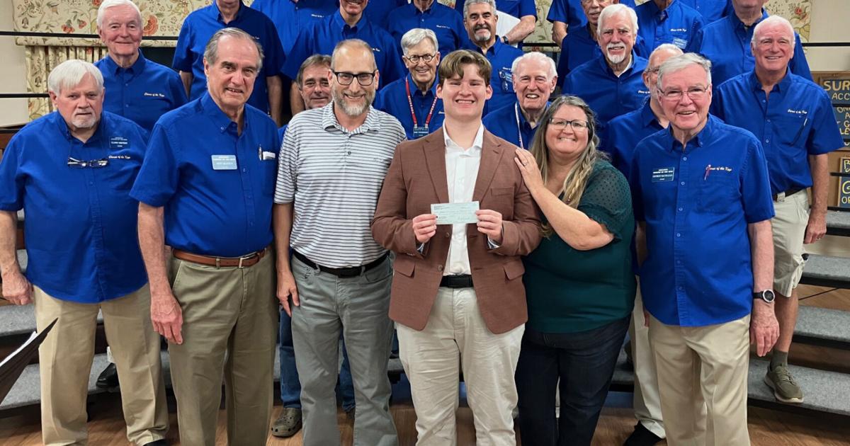 Jaden Zomir of Sarasota Virtual High School poses with his mother as he is presented with his scholarship from Sarasota Chorus of the Keys.