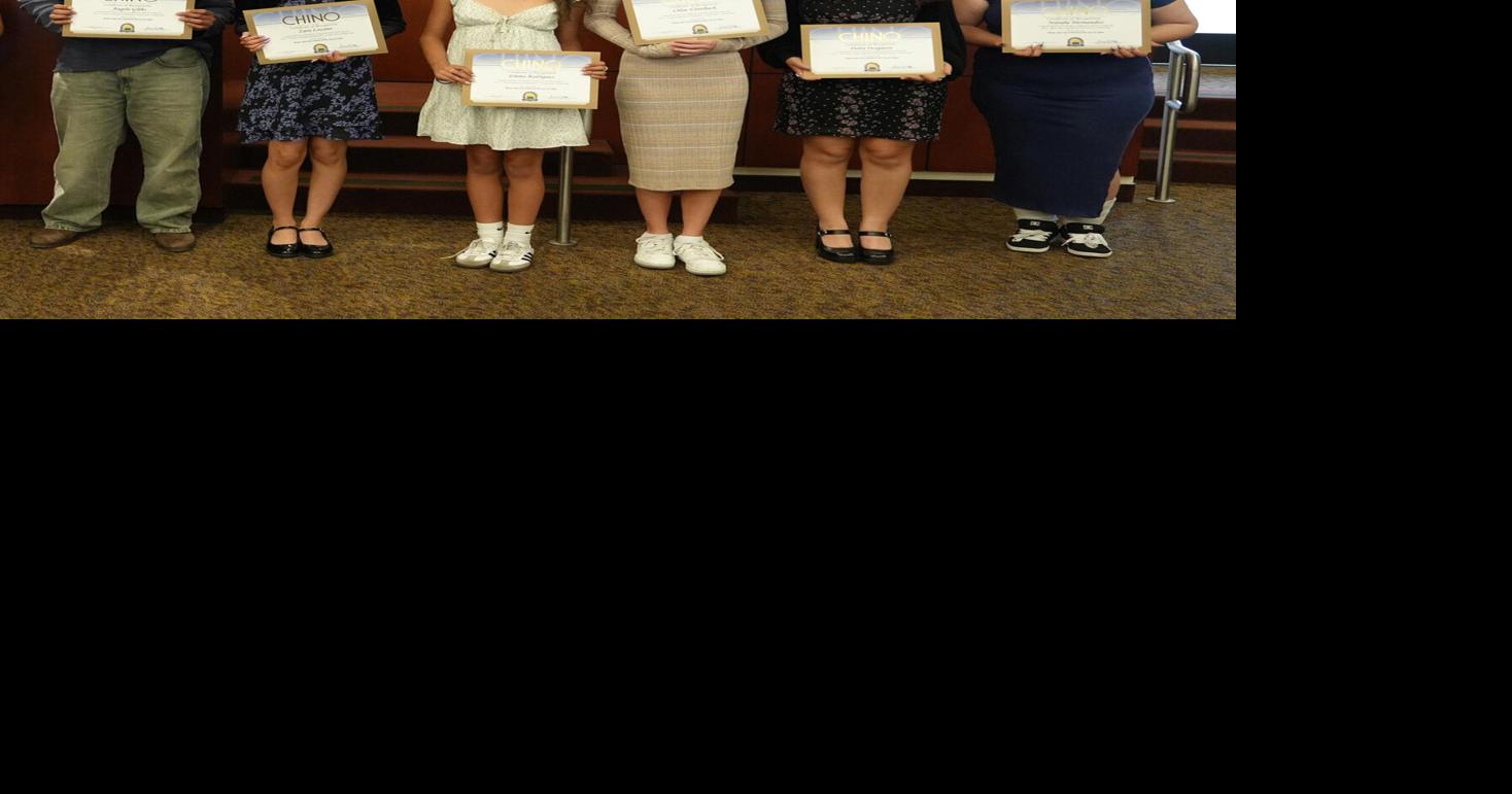 Recipients of the Chino Cultural Foundation’s scholarships were recognized at the June 3 City Council meeting. Shown (from left) are Youth Arts Scholarship recipients Angelo Gibbs, Zara Lozano, Emma Rodriguez and Chloe Utterback; Gretchen Hartt McCombs Memorial Music Scholarship recipient Dolce Oceguera; and Rose Ann Hammond Memorial Scholarship recipient Natalie Hernandez. Not shown are Youth Arts Scholarship recipients Floria Cao and Charlotte Hernandez. The Youth Arts Scholarship is awarded to students in music, theater or visual arts programs for training, instrument purchase or rental; the Rose Ann Hammond Scholarship is awarded to a graduating Buena Vista High School student pursuing education, training or a career in the arts; and the Gretchen Hartt McCombs Memorial Music Scholarship is awarded to a graduating senior or college student enrolled in a university as a music or music education major.