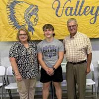 From left: Terri Gregory, Scholarship Committee Treasurer, Jerrett Jones, 2025 Scholarship Recipient and David Adkins, Scholarship Committee Chair are pictured at the Valley Alumni Annual Banquet on Saturday, June 28, 2025.